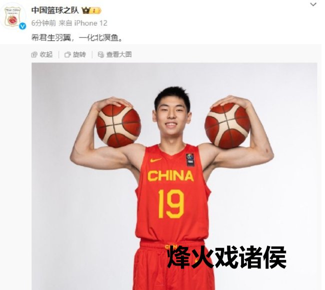 中国篮球官方写说念:“希君生羽翼,一化北溟鱼。”